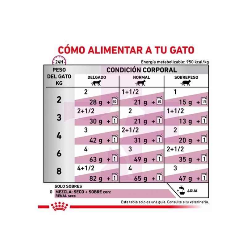 - Formulado con un bajo contenido de fósforo y un contenido moderado de proteínas de alta calidad para favorecer la función renal.