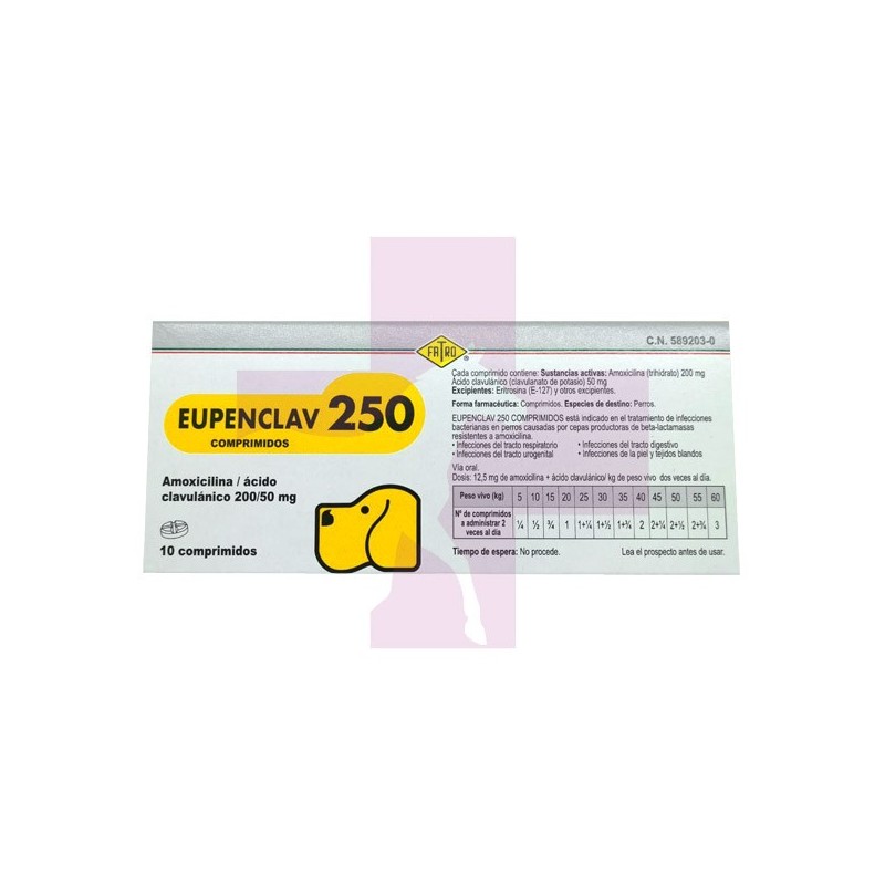 * Indicaciones: tratamiento de infecciones bacterianas en perros causadas por cepas productoras de beta-lactamasas resistentes a amoxicilina.
