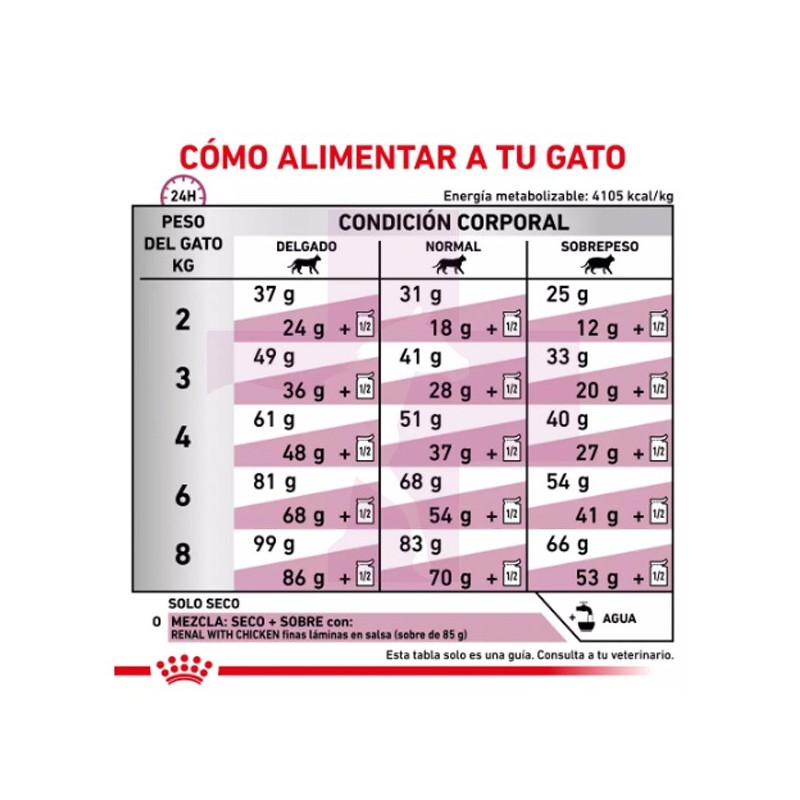 Formulado con un bajo contenido de fósforo y un contenido moderado de proteínas de alta calidad para favorecer la función renal.