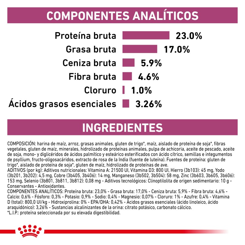 Alimento complementario para mantener la salud gastrointestinal en pequeños animales.