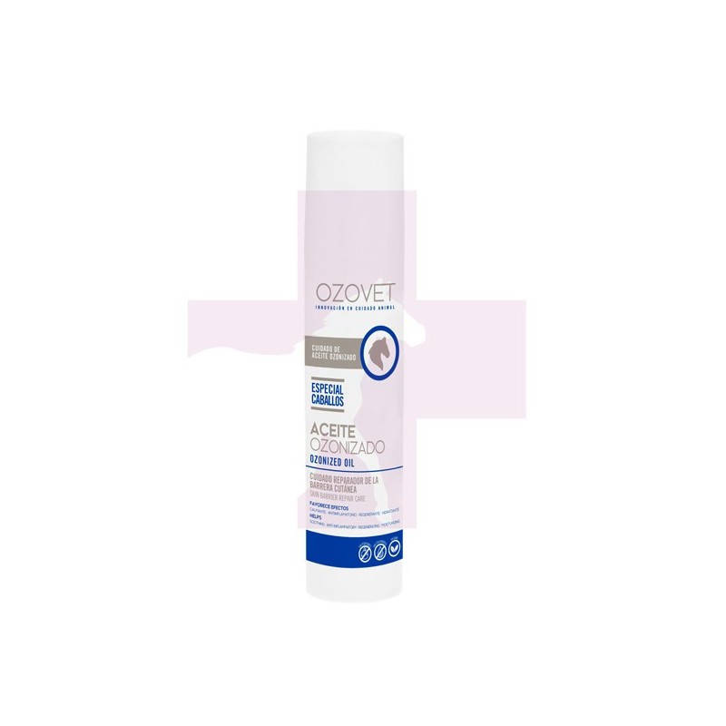Para un cuidado completo de la piel se recomienda aplicar el Aceite ozonizado por toda la superficie corporal 2 horas antes del baño rutinario con el Champú de Aceite Ozonizado OzoPets Especial Caballos.