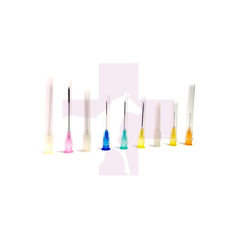 Aguja de un solo uso con cono de polipropileno en color y cánula de acero inoxidable. Compatible con jeringas de conexión Luer y Luer-Lock.