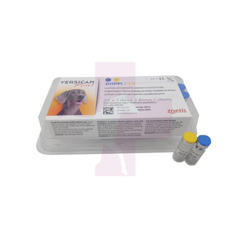 * Indicaciones: Inmunización activa frente al virus del moquillo, adenovirus canino tipo 1 y tipo 2, parvovirus canino, parainfluenza canina y leptospira.